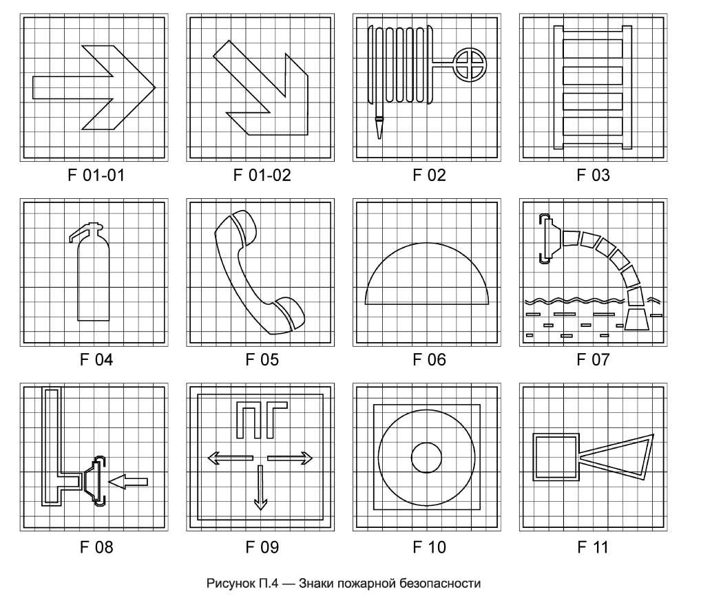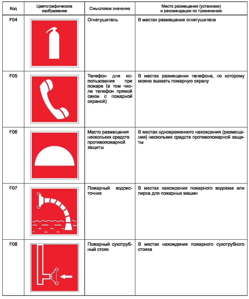 - обозначения пожарной техники, средств противопожарной защиты, их элементов;
