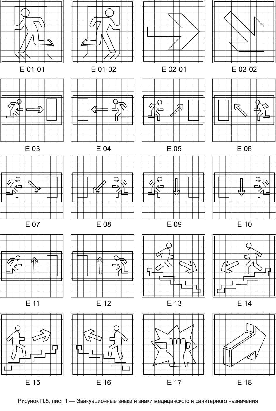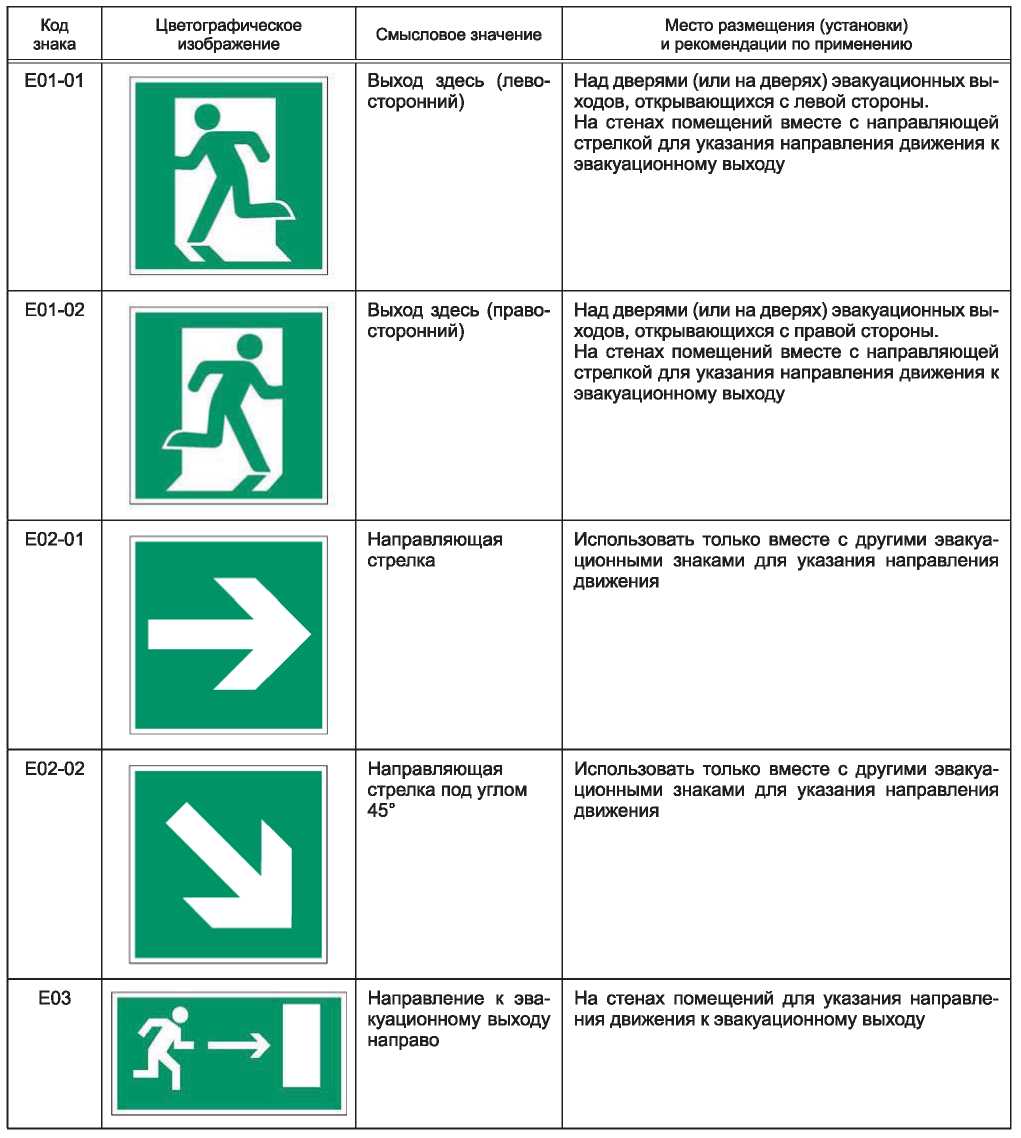 Таблица Л.1 — Эвакуационные знаки