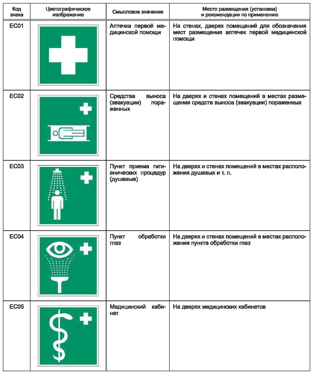 Эвакуационные знаки и знаки медицинского и санитарного назначения
