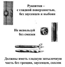 - напильники, шаберы, отвертки, ножовки должны иметь рукоятки длиной не менее 150 мм;