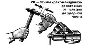 28. Не уменьшай угол наклона зубила к плоскости губок тисков менее 30-35°. Возможен срыв зубила и травма руки