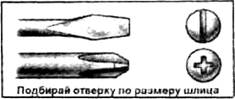 43. Отвертки следует применять для крепежа винтов и шурупов с размерами шлицов, соответствующими размерам рабочего конца отверток (отвертки слесарно-монтажные с прямыми и крестообразными рабочими частями следует применять для завертывания и отвертывания винтов и шурупов соответственно с прямыми и крестообразными шлицами).
