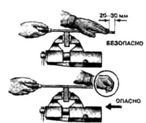 - применять напильники без ручек; выбивать стружку ударами напильника.