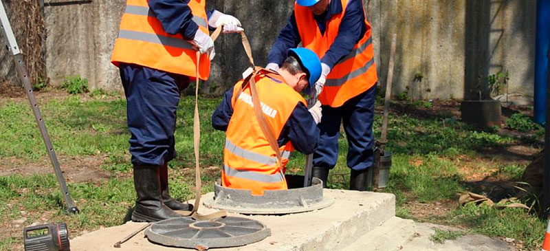 - Работу в емкостных сооружениях глубиной более 1 метра (колодцах, туннелях, коллекторах, резервуарах и других) выполняют не менее трех работающих (далее – бригада). Один из работающих выполняет работу в емкостном сооружении, второй с помощью сигнально-спасательной веревки страхует снаружи этого работающего (далее – дублер), третий – находится на поверхности емкостного сооружения, подает инструмент, наблюдает за движением транспортных средств и окружающих, в случае необходимости вместе с дублером оказывает помощь работающему в емкостном сооружении (далее – наблюдатель).