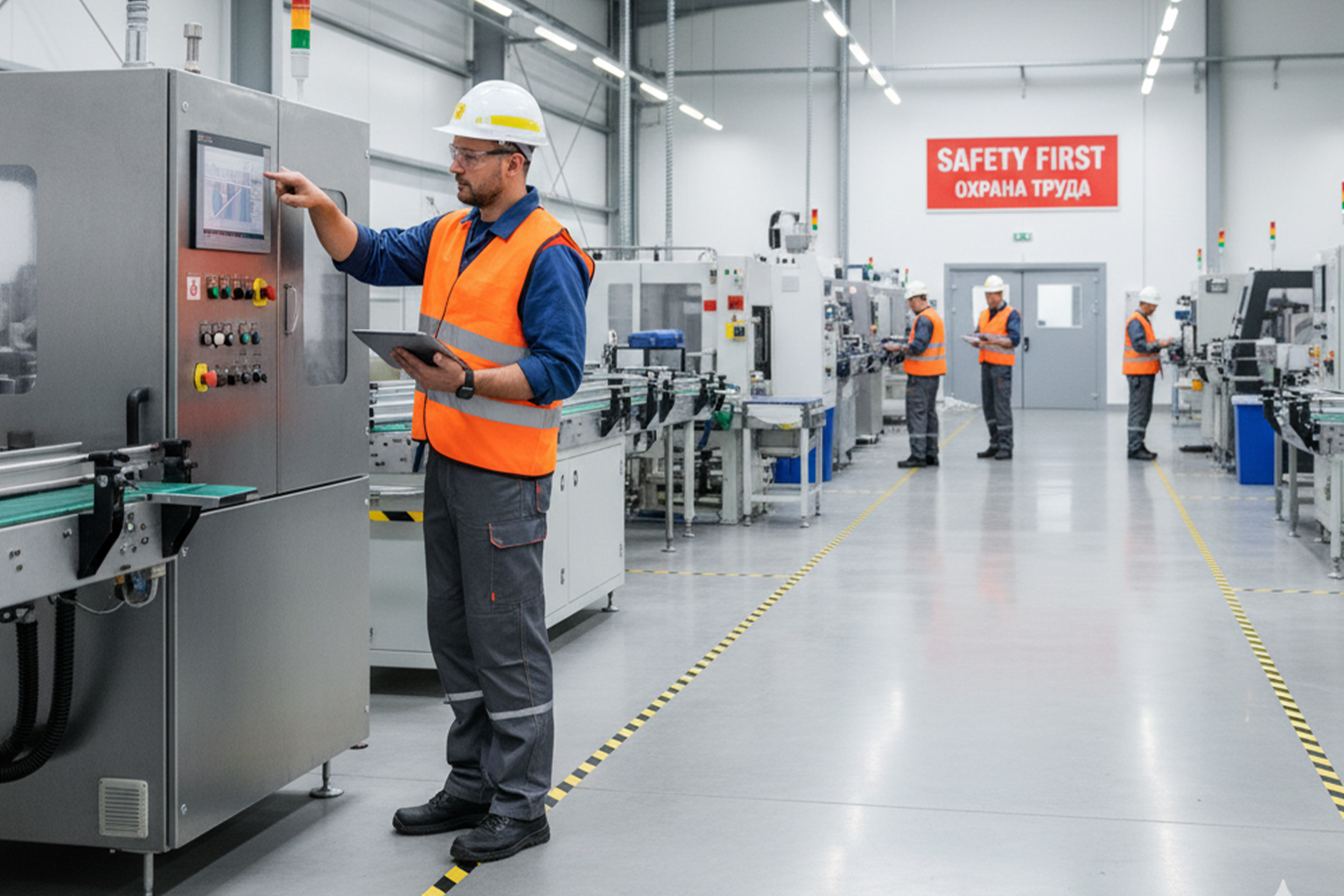 - обеспечивает безопасность при эксплуатации территории, зданий, сооружений и помещений, оборудования, ведении технологических процессов и применении в производстве материалов, химических, радиоактивных и других опасных веществ;